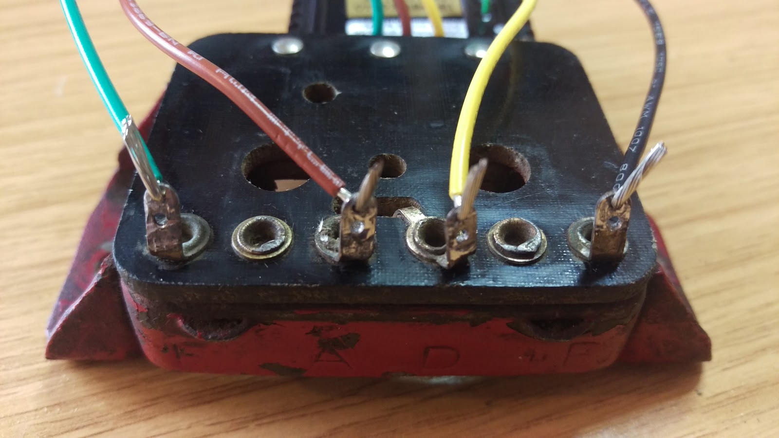 Here it is, with the original 1942 MCR1 quaking in the background. That little green wire is the 6V/12V link.