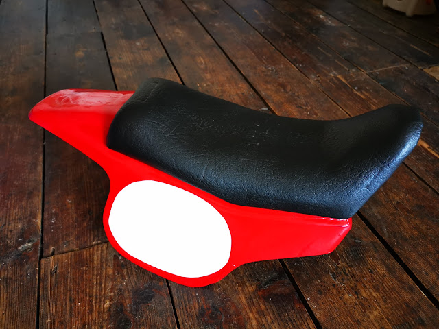There's been a lot of sheet metal work on this bike - the magneto cover, the faux swinging arm and the silencer which was completely missing. It's one of those pressed sheet metal affairs quite widely used in the 70s and 80s on bikes when it can be hidden and some (think the last BSA and Triumph unit singles) where it cannot.